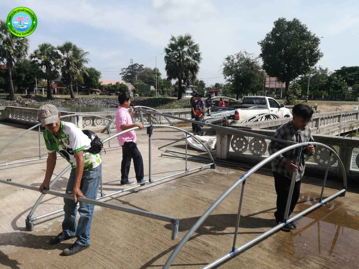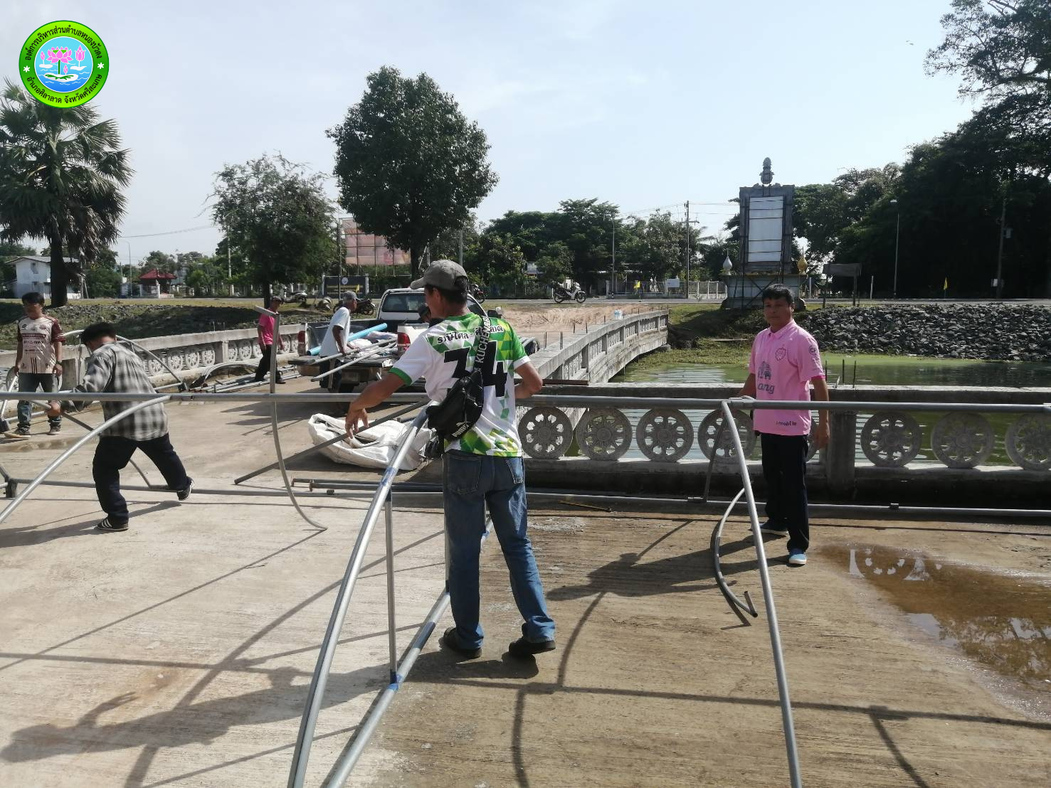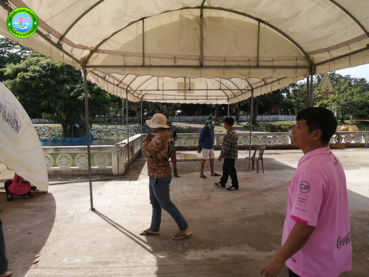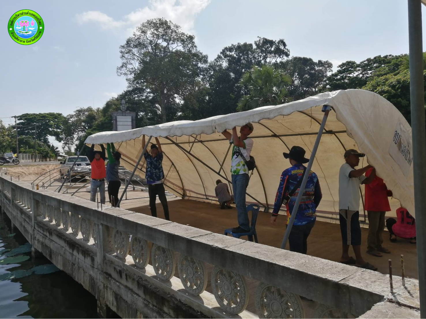 วันอังคารที่ 7 เดือน ตุลาคม พ.ศ.2568 กางเต็นท์ลานพระใหญ่ เพื่อเตรียมความพร้อมในการจัดงานยกเศียรพระ พระพุทธนิมิตมิ่งมงคล