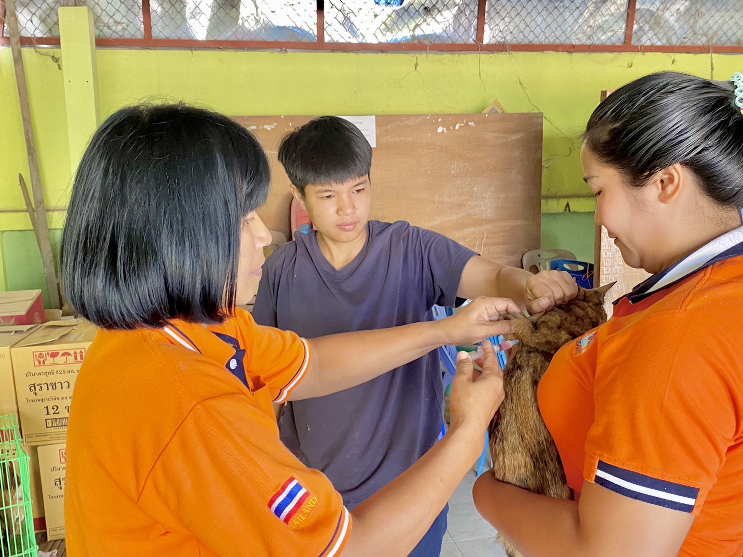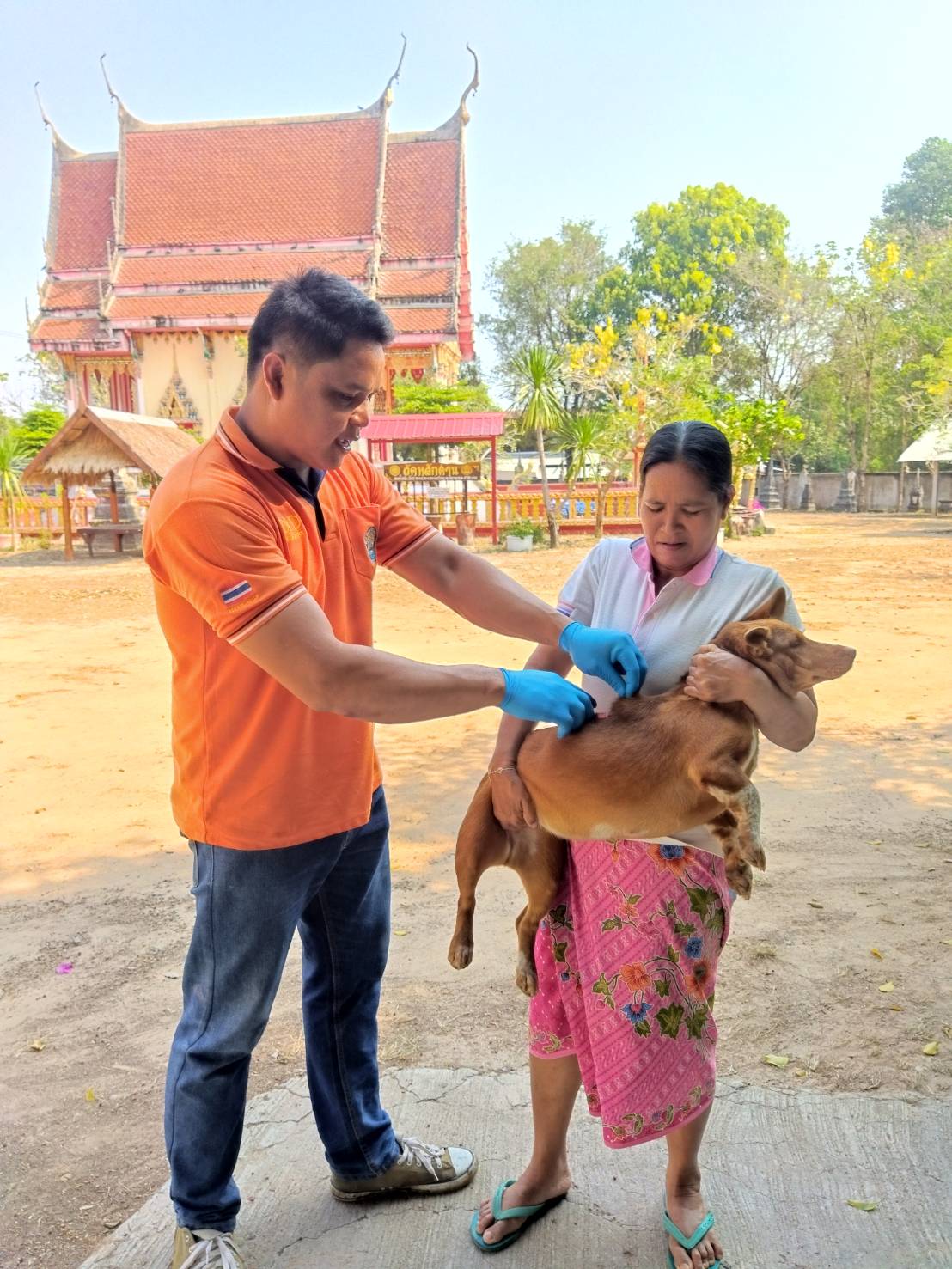 วันที่ 5 เมษายน 2566 โครงการสัตว์ปลอดโรค คนปลอดภัย จากโรคพิษสุนัขบ้า ตามพระปณิธาน ดร.สมเด็จสมเด็จเจ้าฟ้าฯ กรมพระศรีสวางควัฒน วรขัตติยราชนารี ประจำปีงบประมาณ พ.ศ.2566 และได้มอบหมายให้อาสาปศุสัตว์ตำบลท