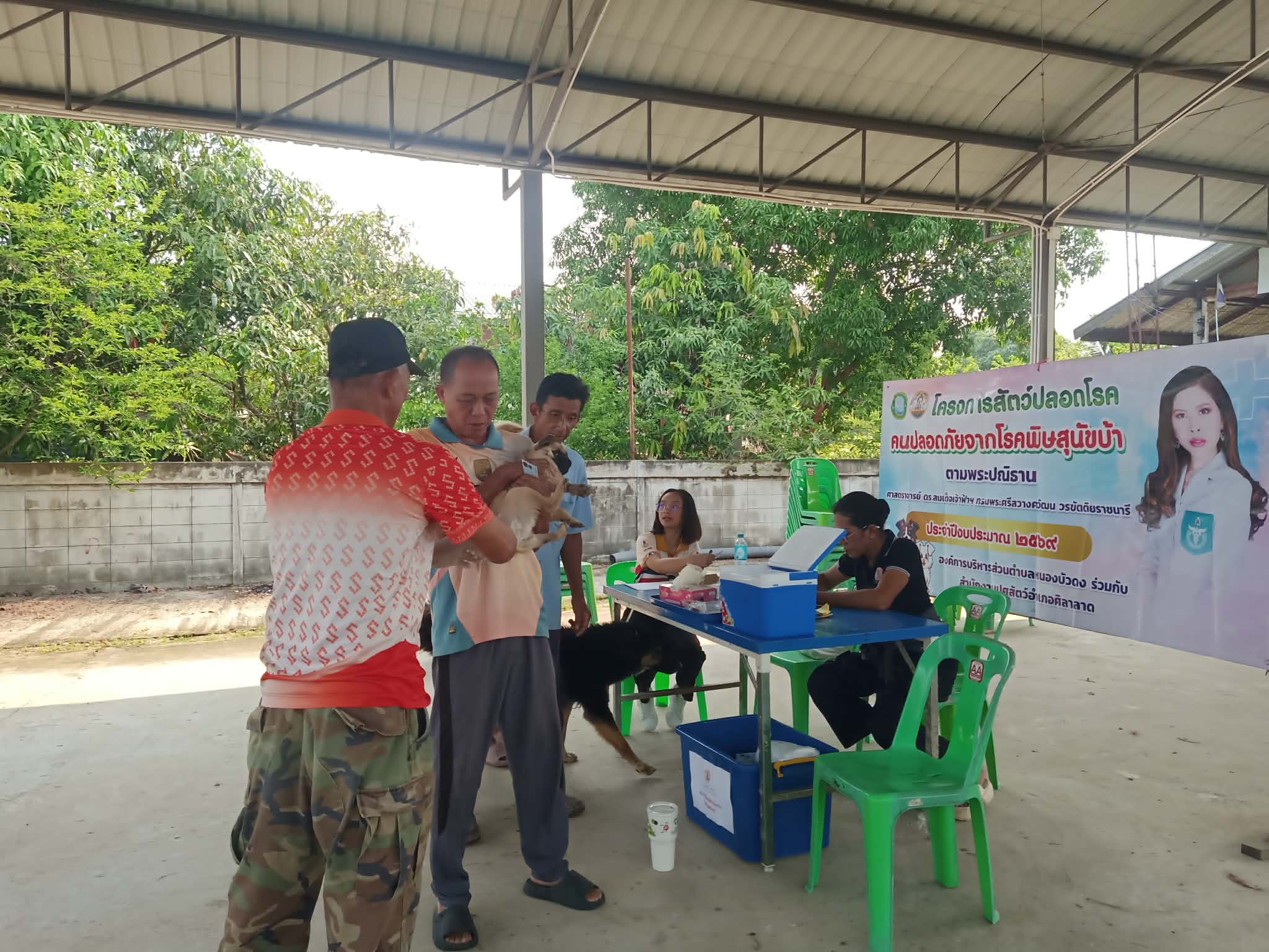 วันจันทร์ที่ 27 เมษายน 2569 ได้ดำเนินการตามโครงการสัตว์ปลอดโรค คนปลอดภัย จากโรคพิษสุนัขบ้า ประจำปี 2569