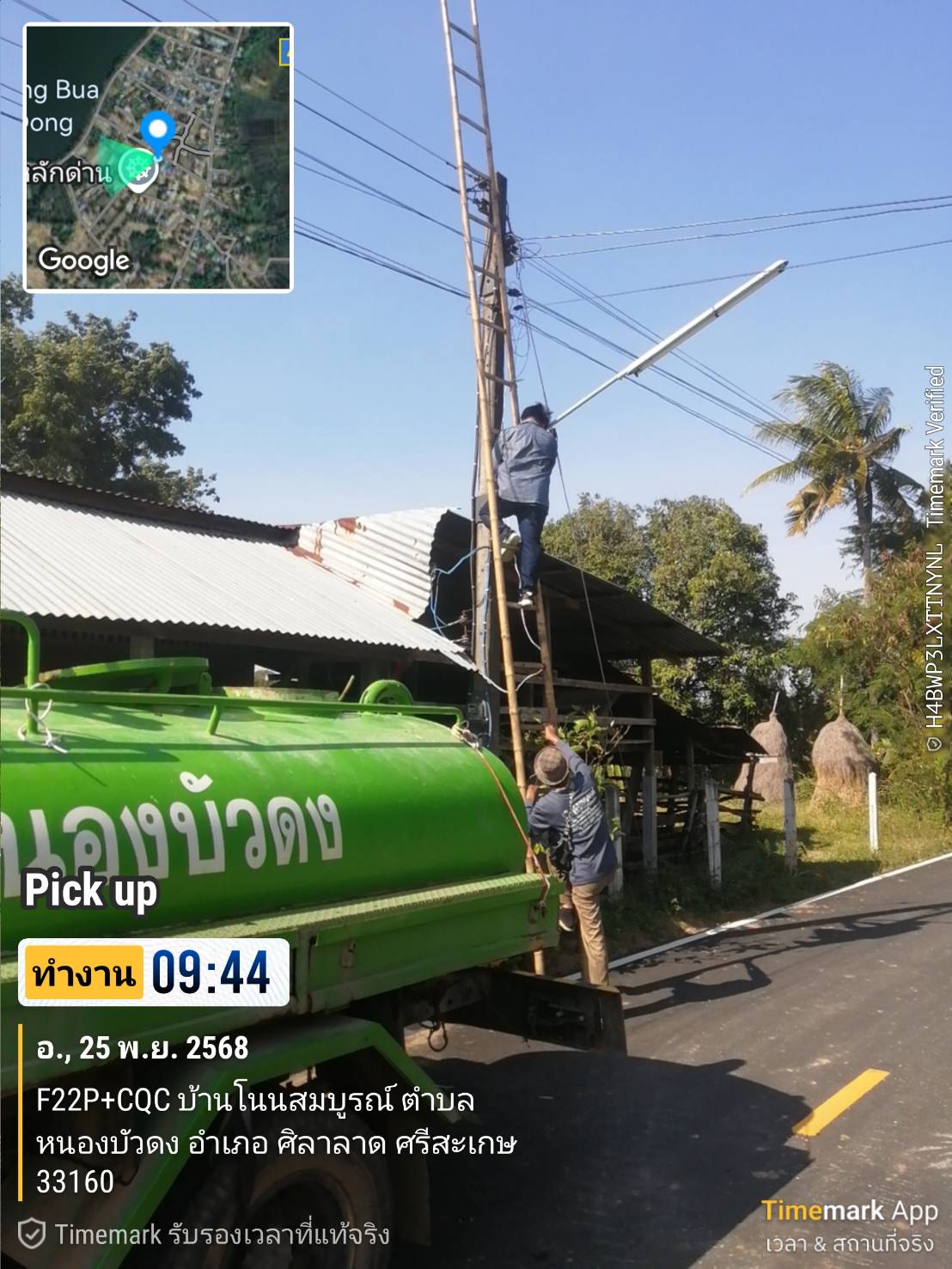 วันอังคารที่ 25 เดือน พฤศจิกายน พ.ศ.2568 นายจตุรวิทย์ อายุยืน นายกองค์การบริหารส่วนตำบลหนองบัวดง มอบหมายให้ กองช่าง ซ่อมไฟแสงสว่าง บ้านโนนสมบูรณ์ หมู่ที่ 2 จำนวน 1 จุด